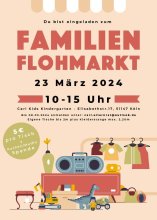Herzliche Einladung zum Familien-Flohmarkt am 23. März von 10:00 - 15:00 Uhr der CariKids Kita in Wahnheide, Elisabethstr. 17, 51147 Köln: